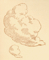 It is enough occupation, when no storm is brewing, to watch the cloud currents and the chambers of the sky. From Kearsarge, say, you look over Inyo and find pink soft cloud masses asleep on the level desert air; south of you hurries a white troop late to some gathering of their kind at the back of Oppapago; nosing the foot of Waban, a woolly mist creeps south. In the clean, smooth paths of the middle sky and highest up in air, drift, unshepherded, small flocks ranging contrarily. You will find the proper names of these things in the reports of the Weather Bureau -- cirrus, cumulus, and the like and charts that will teach